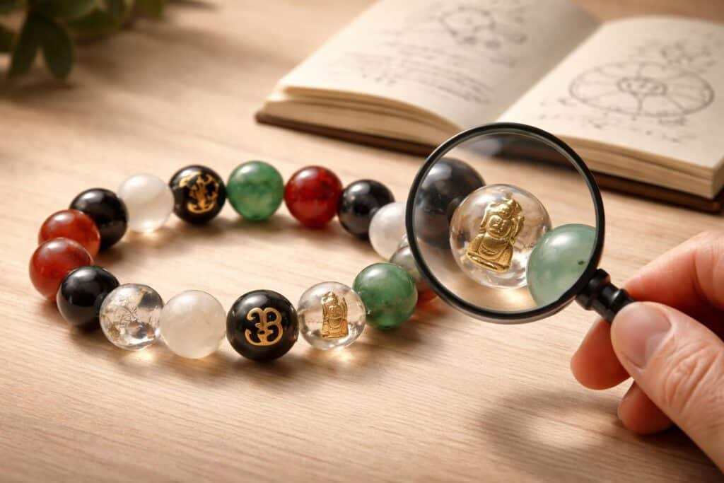 Pour distinguer un bracelet feng shui véritable, il est essentiel de se concentrer sur plusieurs critères clés. L’authenticité repose principalement sur la qualité des matériaux utilisés, les symboles intégrés et la provenance du produit.